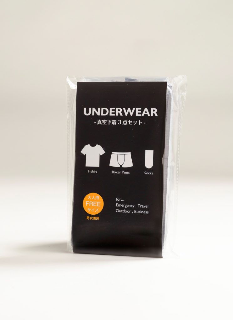 2025.11.21 10年保存 真空下着3点セット(男女兼用フリーサイズ) 防災関連商品 特徴 洗濯環境が整わず、清潔な衣類や着替えを入手しづらい避難時に役立つ、男女兼用フリーサイズの下着3点セットです。 注文単位 24個の倍数 パッケージサイズ W120mm×D15×H225mm 約210g セット内容 Tシャツ×1 ボクサーパンツ×1 ソックス×1 色:グレー 材質:ポリエステル・綿・ポリウレタン サイズ:男女兼用フリー 子供用のご用意もあります。 防塵・防水ポータブル電源 PVS+ 前の記事